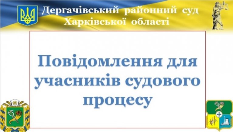 Дергачівський районний суд Харківської області викликає обвинувачену Лобойко Інну Володимирівну, 01.04.1982 року народження, зареєстровану за адресою: Харківська область, Харківський район, с-ще Козача Лопань, вул. Чехова, 28 та фактично проживаючу за адресою: Харківська область, Харківський район, с-ще Козача Лопань, вул. Центральна, 42, у судове засідання по справі № 619/1668/25, у вчиненні злочинів, передбачених ч. 2 ст. 111, ч. 5 ст. 111-1 КК України . Судове засідання відбудеться о 13 год 00 хв 19 грудня 2025 року у приміщенні суду за адресою: 62303, Харківська область, Харківський район, м. Дергачі, вул. Європейська, 63, (зал судових засідань №2).