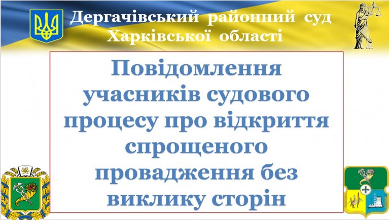 Повідомляємо, що суд розглядає справу в порядку спрощеного позовного провадження без виклику сторін за наявними у справі матеріалами, за відсутності клопотання будь-якої зі сторін про інше в приміщенні