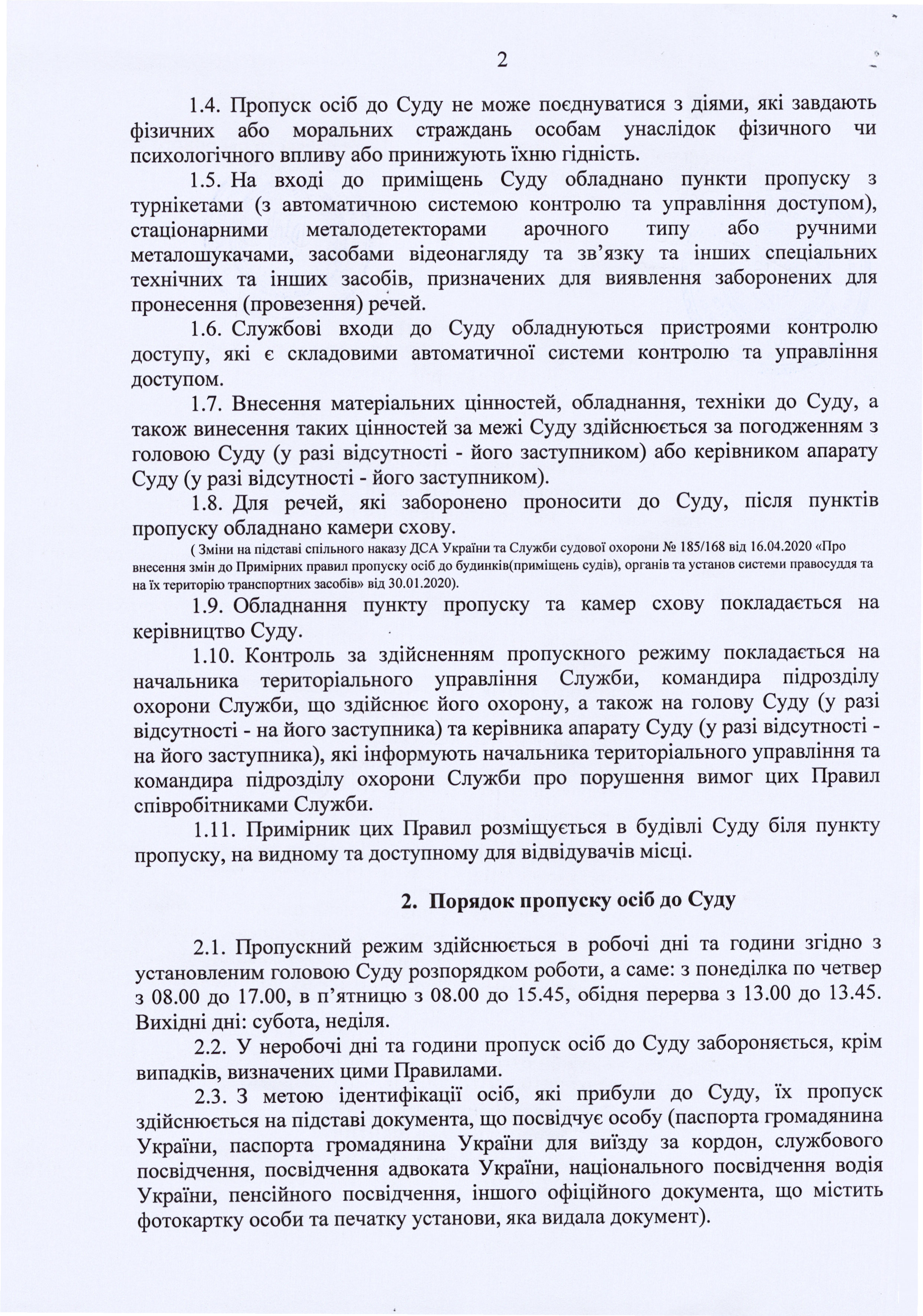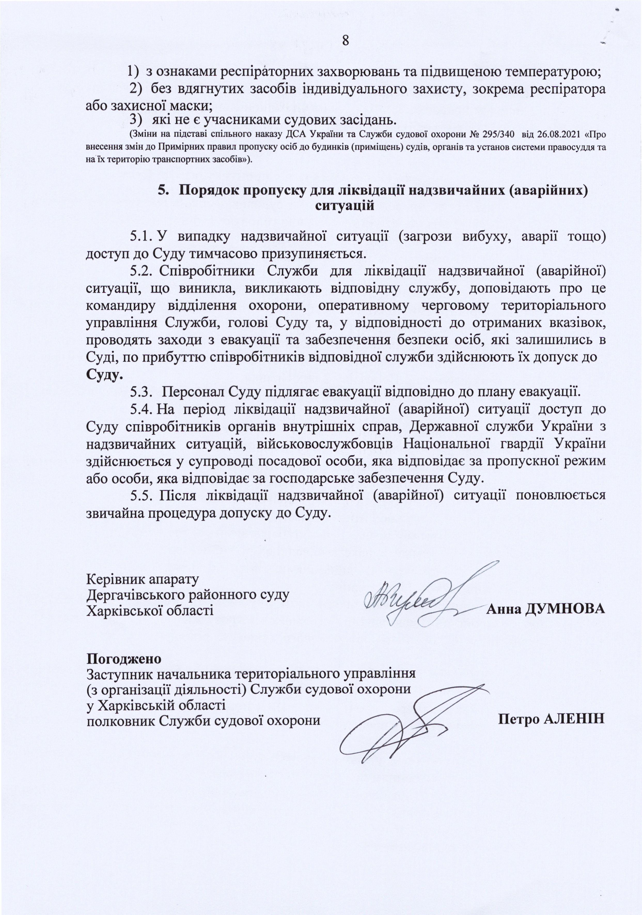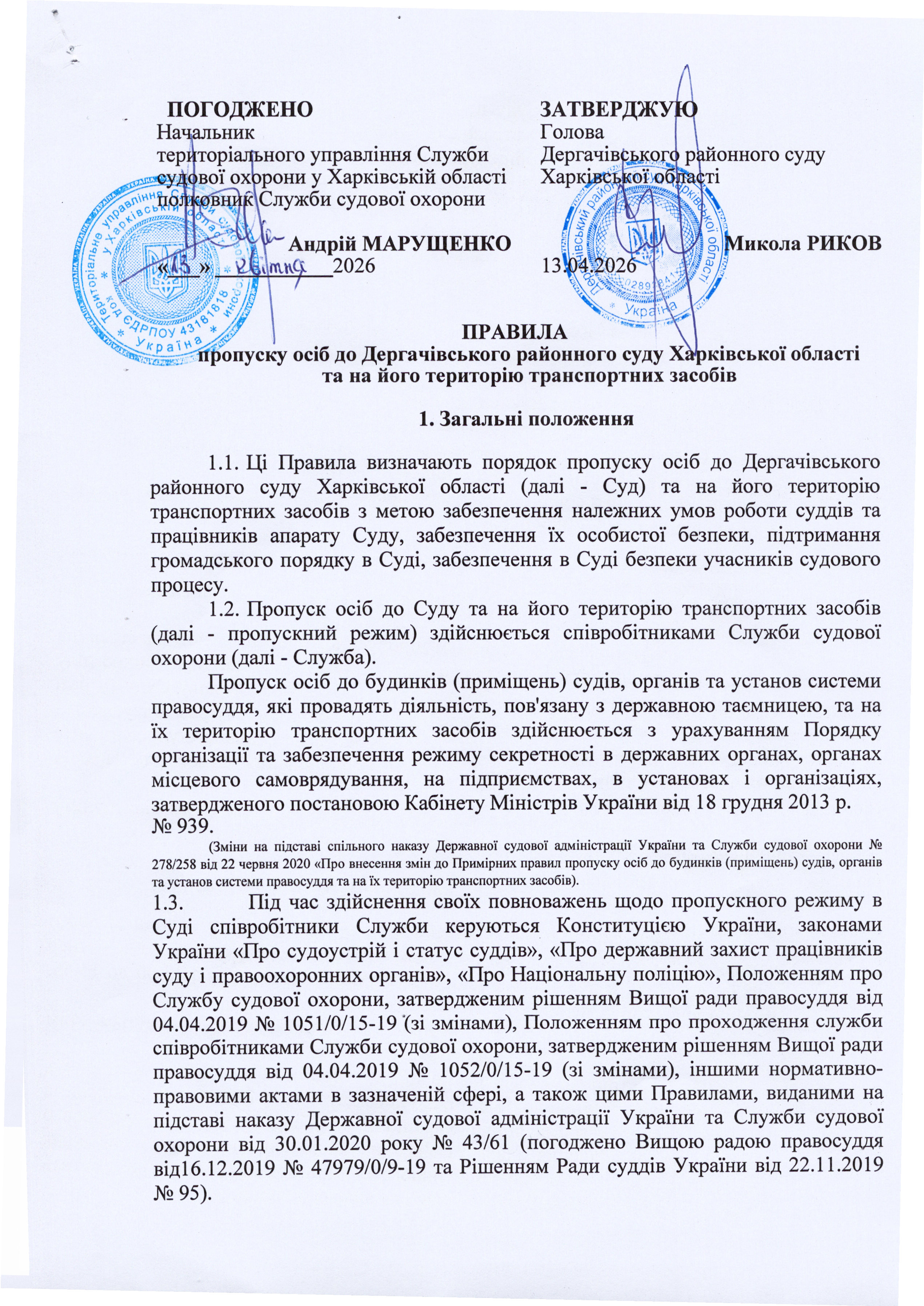 Правила пропуску осіб до Дергачівського районного суду Харківської області та на його територію транспортних засобів
